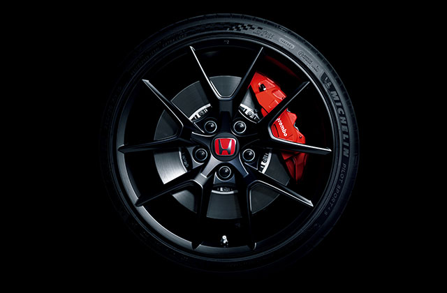 O Civic Type R conta com freios a disco nas 4 rodas com tecnologia ABS (Antilock Brake System) e EBD (Electronic Brake Distribution) para melhor controle e eficiência de frenagem em situações emergenciais.