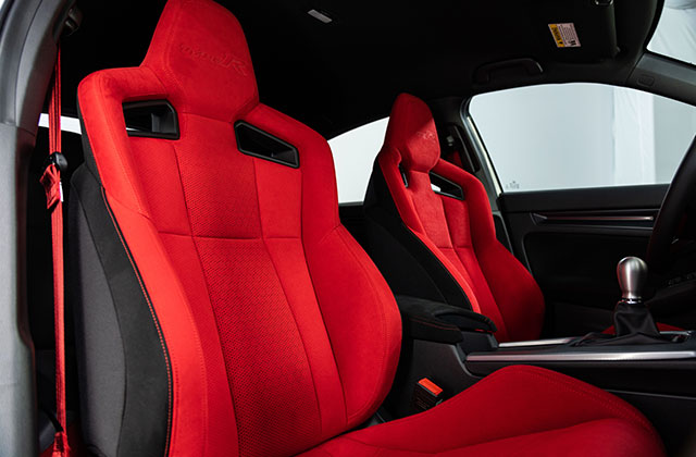 Com um design exclusivo, os bancos dianteiros esportivos tipo concha contam com acabamento em tecido vermelho com efeito Suede, fortemente reforçados para manter o motorista estável durante curvas fechadas, oferecendo melhor manobrabilidade para direção e troca de marchas.