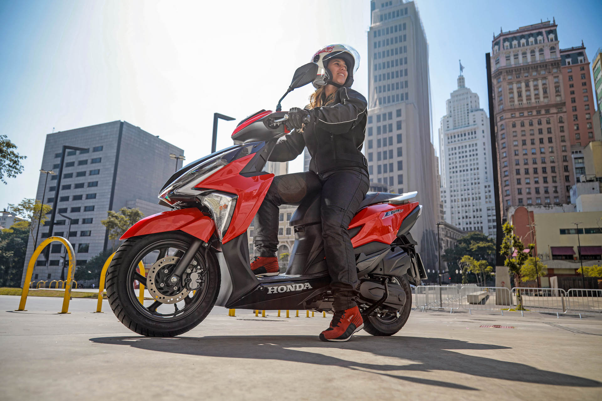 √ Precisar de maior proteção para os pés, que na Elite 125 ficam abrigados atrás de um amplo escudo, em um piso plano, e não precisam ser usados em nenhum comando. Tais características facilita o uso de calçados sociais e saias.