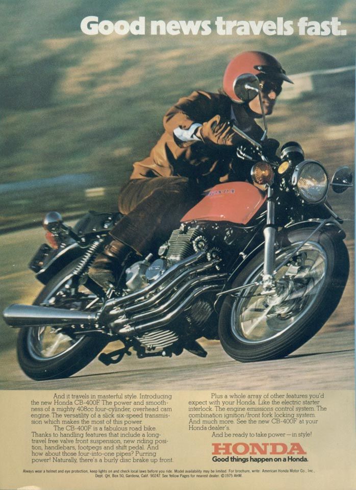 Honda CB 400 Four foi um sucesso no mundo inteiro, inclusive no Brasil, para onde sua antecessora CB 350 Four nunca foi importada. Ainda mais ágil que a CB 500 Four, acessível a muitos não apenas pelo preço mais baixo, mas também pela facilidade de pilotagem oferecida pelo peso limitado a 170 kg e pela bem distribuída potência de 37 cv, a menor das Four virou uma queridinha.