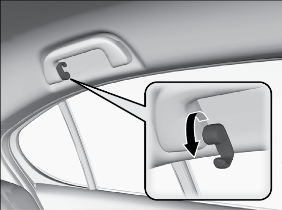 Existe um gancho de roupas na alça traseira esquerda do teto. Puxe-o para baixo para usá-lo.