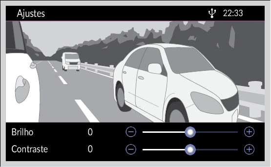 Não tente fazer o ajuste do brilho e contraste da tela do LaneWatch com o veículo em movimento. |