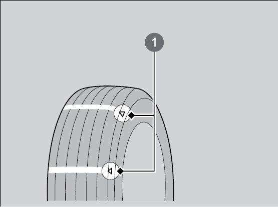 | O rodízio de pneus com padrões direcionais da banda de rodagem deverá ser feito somente entre os pneus dianteiros e traseiros (e não entre os pneus direitos e esquerdos). Os pneus direcionais somente devem ser instalados com a marca de rotação voltada para a frente, como indicado abaixo: