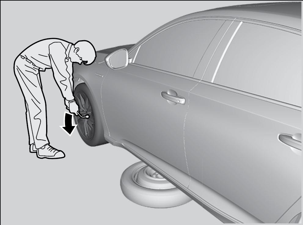 4. Coloque o estepe temporário (lado da roda para cima) embaixo da carroçaria do veículo, próximo ao pneu a ser substituído.