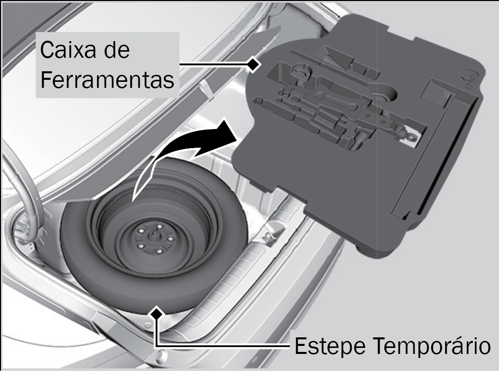 Tenha cuidado para não se machucar ao remover ou guardar o estepe temporário. |