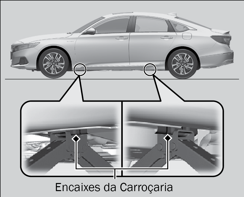 Não use o macaco com pessoas ou bagagens no interior do veículo. Use o macaco fornecido com o veículo. Outros macacos poderão não suportar o peso do veículo ou apresentar formato incompatível. |