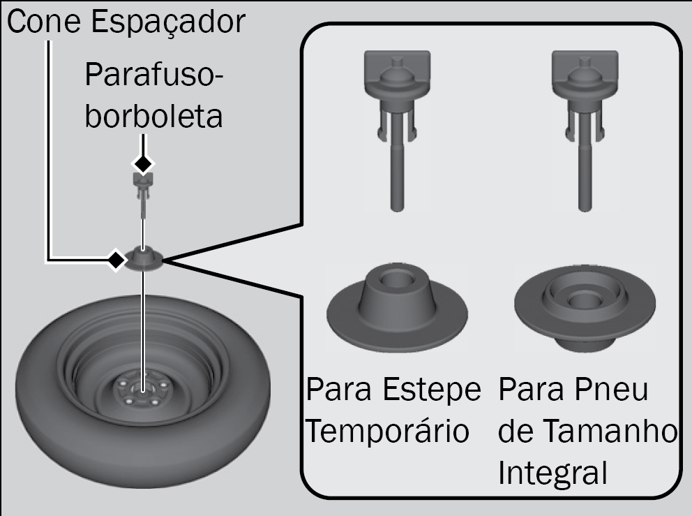 Use o estepe temporário (compacto) somente para substituição temporária. Leve o pneu padrão para conserto ou substituição e instale-o novamente no veículo o mais rápido possível.