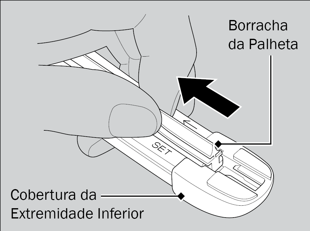 6. Deslize a extremidade da borracha da palheta para dentro da cobertura da extremidade inferior da palheta.