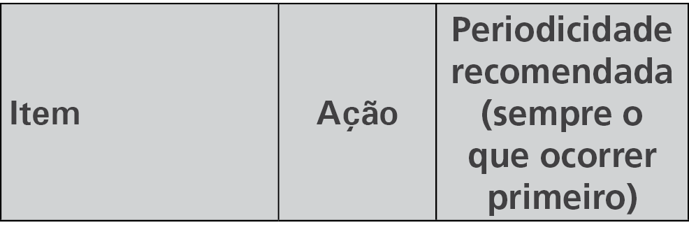 *1: Uso Severo - itens de manutenção submetidos às condições severas de uso devem ser substituídos na metade do período ou quilometragem recomendados (o que ocorrer primeiro).