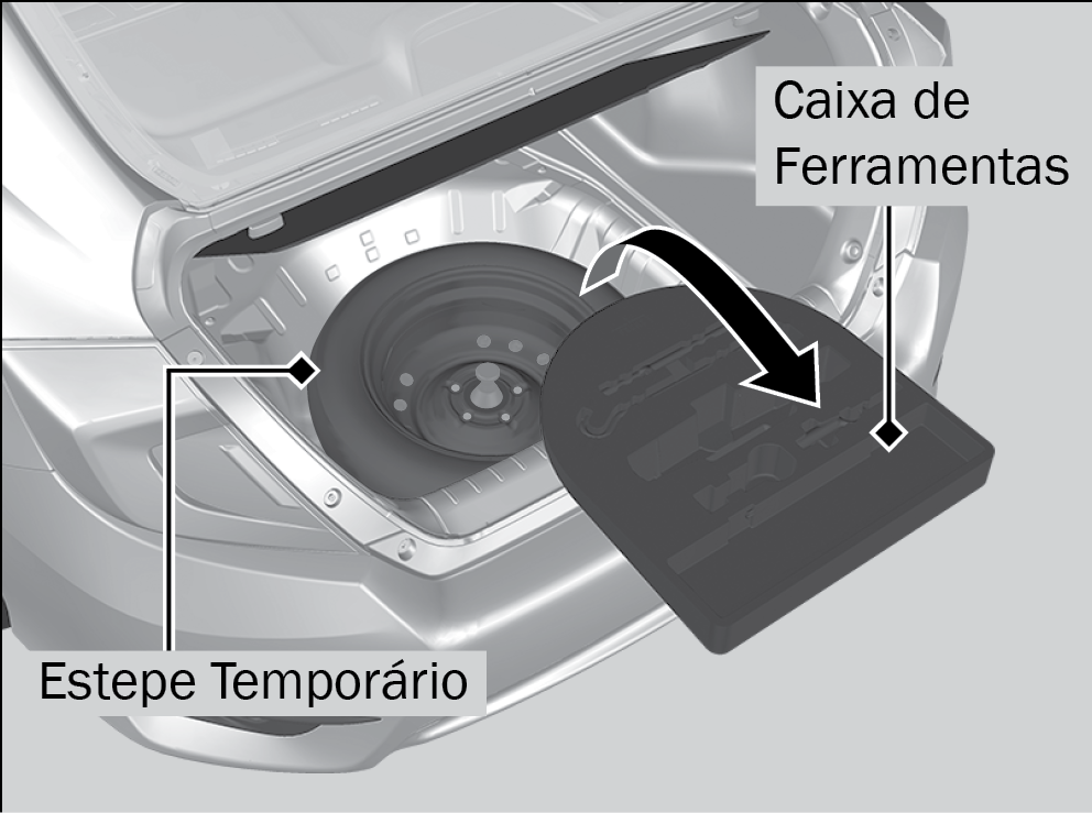 1. Retire a caixa de ferramentas e o estepe temporário do porta-malas.
