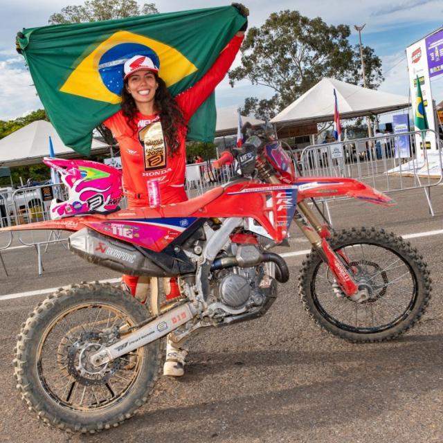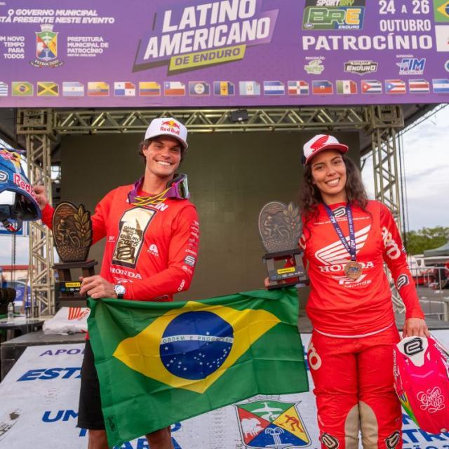 Bruno Crivilin (E2) e Bárbara Neves (EF), da Honda Racing, são campeões latino-americanos de enduro