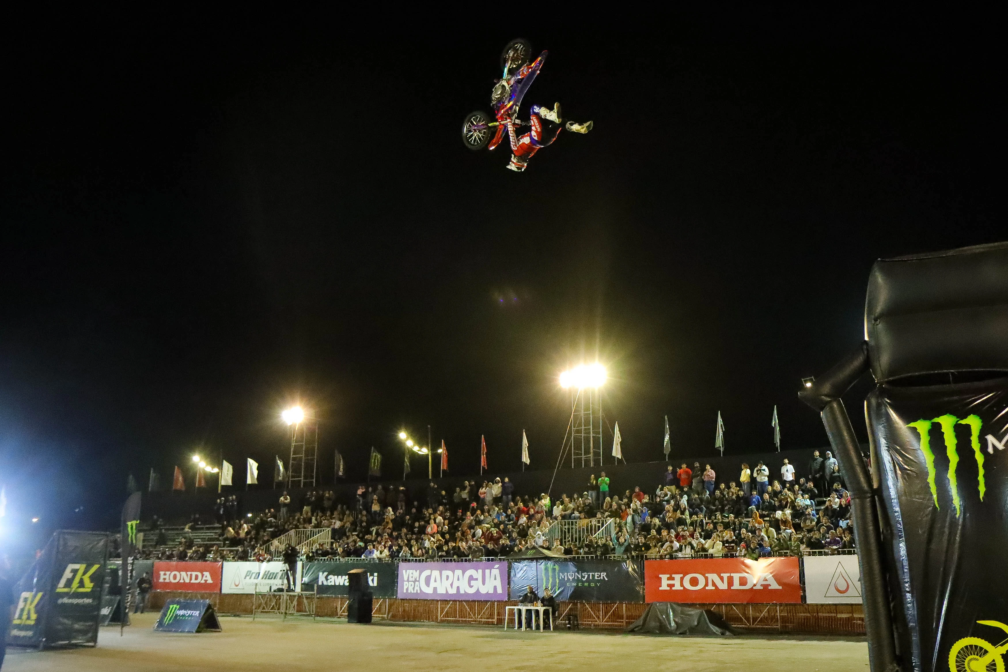 Caraguatatuba (SP) – A primeira etapa do Arena Freestyle Show 2023 levantou o público na noite deste sábado (29/7). Válido pelo Campeonato Brasileiro de Freestyle Motocross, o evento patrocinado por Honda e Pro Honda teve arquibancadas cheias na Praça de Eventos Porto Novo, em Caraguatatuba (SP).