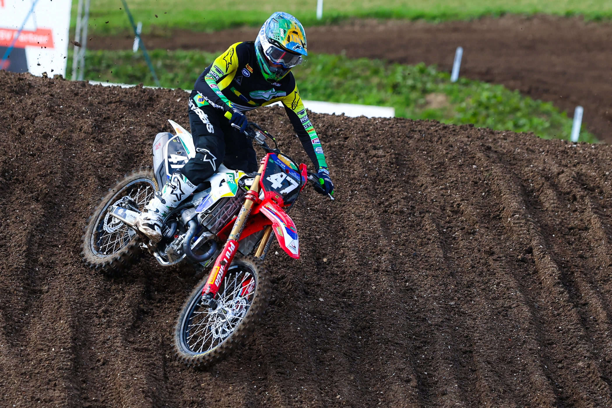 Matterley Basin (Inglaterra) - Primeiro desafio superado por Bernardo Tibúrcio e a equipe brasileira no Motocross das Nações 2024. Na pista de Matterley Basin, na Inglaterra, o piloto da equipe Honda Racing fez sua parte na categoria MX2 e somou pontos importantes para classificar o time às corridas decisivas deste que é um dos mais tradicionais eventos do motociclismo off-road, em sua 77ª edição. Ao lado de Enzo Lopes (MXGP) e Fábio Santos (Open), o mineiro acelera neste domingo (6/10) em busca de melhorar o resultado brasileiro no evento considerado a "Copa do Mundo" da modalidade (o 14° lugar, conquistado nas primeiras vezes em 2008 e 2009, com trios compostos exclusivamente por pilotos Honda Racing).