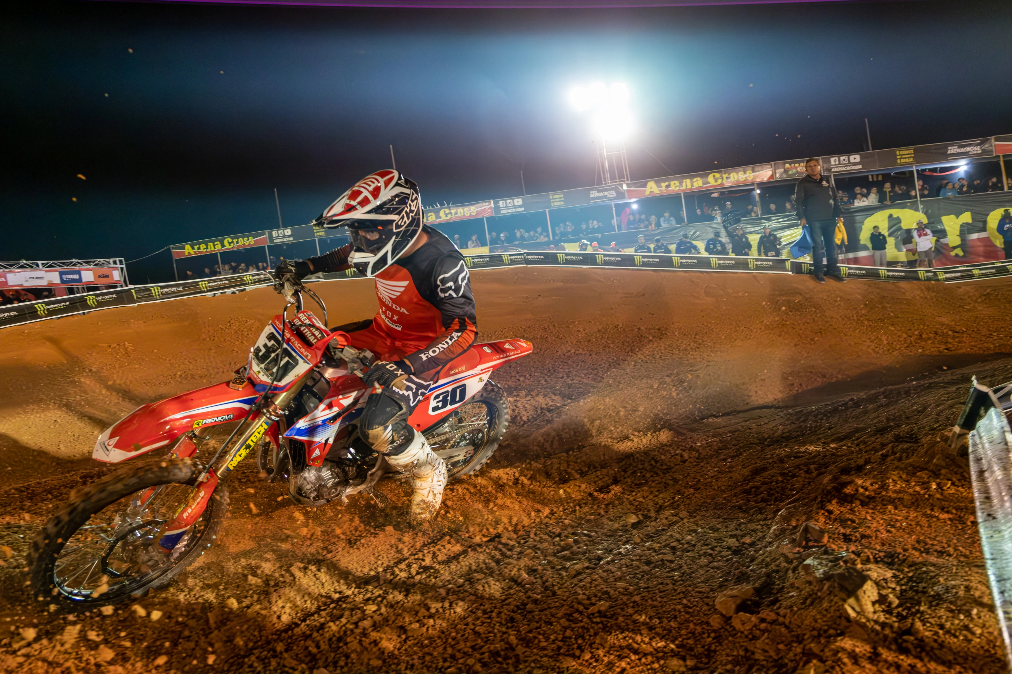 Jundiaí (SP) – A segunda etapa do Arena Cross 2023 movimentou a cidade de Jundiaí (SP), na noite deste sábado (3/6). Pentacampeão e último brasileiro a vencer o título da Pró, em 2019, Hector Assunção, da equipe Honda Racing, mostrou superação na primeira corrida da categoria principal. Ele sofreu uma queda na primeira volta, ficando na última posição, mas cruzou a linha de chegada em quinto lugar, com a motocicleta Honda CRF 450R.