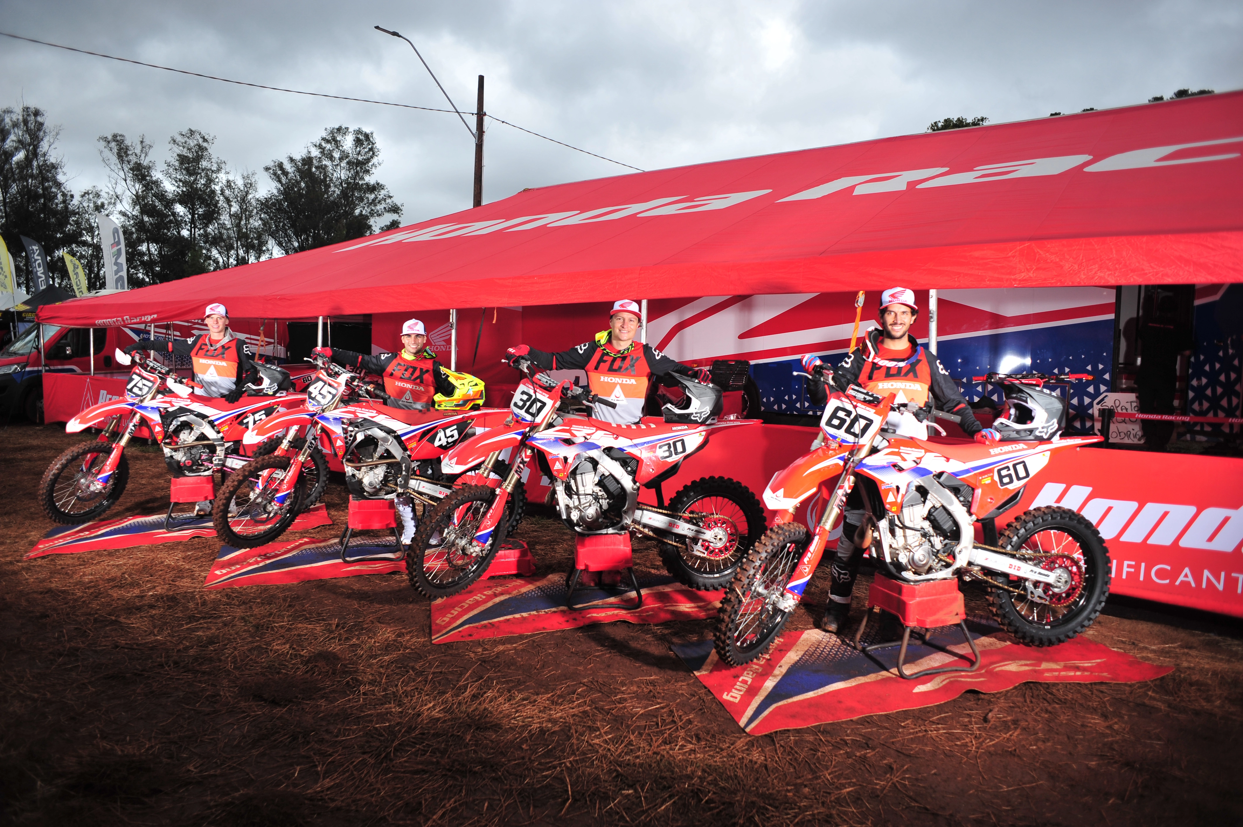 A equipe Honda Racing de Motocross é patrocinada por Pro Honda, Fox, DID, Zeta e Seguros Honda.