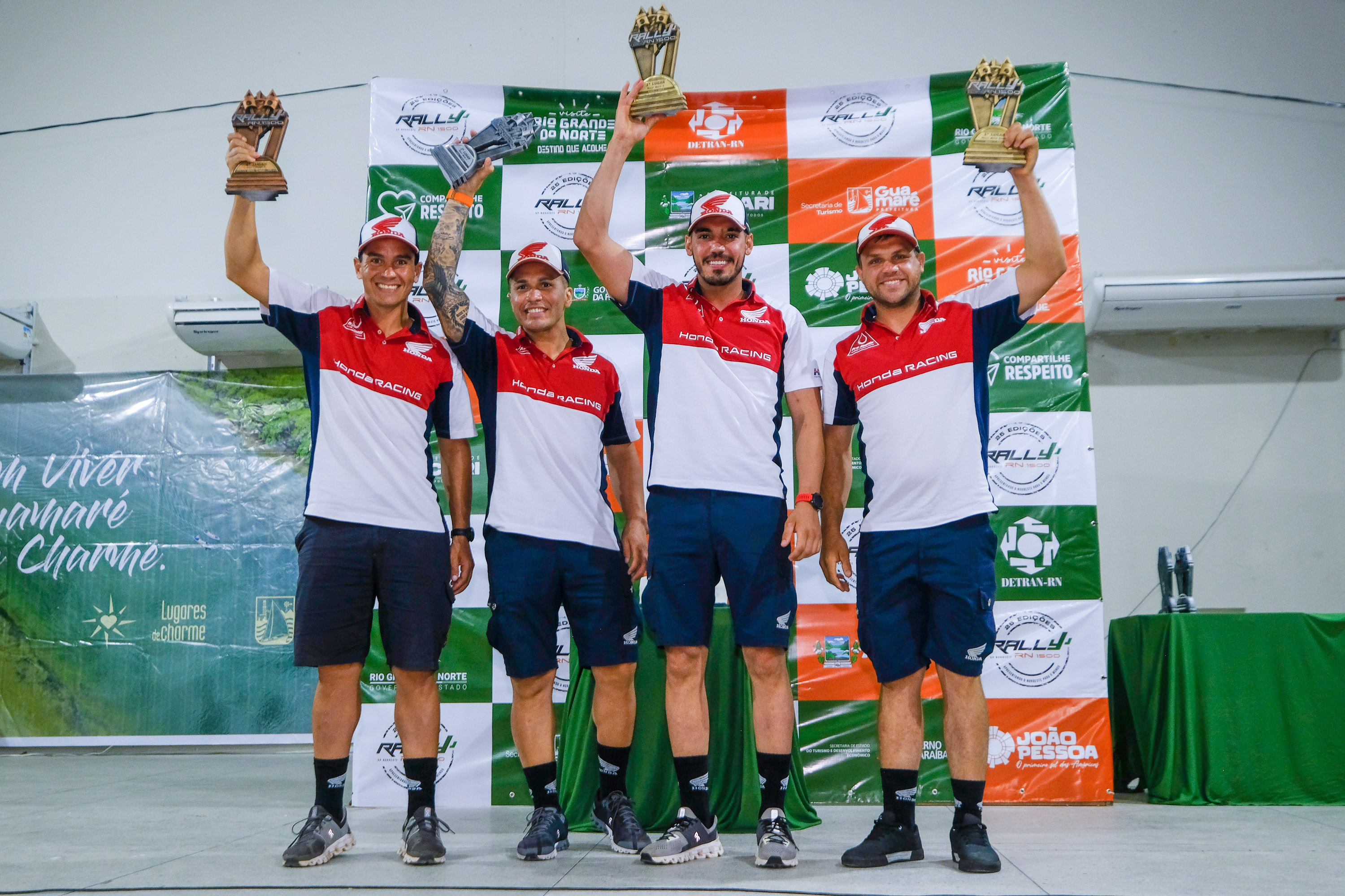 Guamaré (RN) –  Os mais de mil quilômetros de percurso do 25º Rally RN 1500, incluindo 930 de especiais, foram encerrados neste sábado (15/4), quando os pilotos chegaram a Guamaré (RN), no último dia de competição. A Equipe Honda Racing terminou a prova com três pilotos entre os cinco primeiros na classificação geral e com os títulos das classes Moto 2, conquistado por Gabriel Soares e a CRF 450RX, e da Moto Brasil, vencida por Tiago Wernersbach, pilotando uma CRF 250F. O desafio contou pontos para a classificação do Campeonato Brasileiro de Rally Cross Country 2023.
