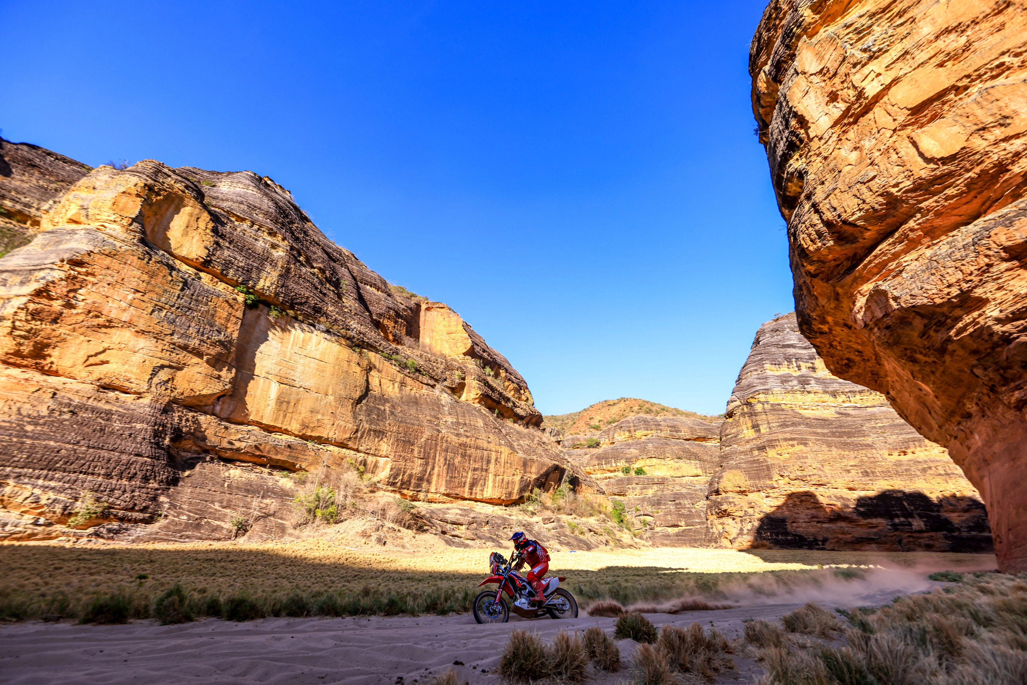 Bom Jesus (PI) – Martin Duplessis venceu a décima etapa do Sertões 2022 entre as motos, realizada nesta terça-feira (6/9), na região de Bom Jesus (PI). O argentino imprimiu forte ritmo nos 329 quilômetros de trechos cronometrados do dia, marcado pelos Cânions do Viana. Assim, com quatro etapas para o final, a disputa pelo título está acirrada na equipe Honda Racing, destaque da prova nas duas primeiras posições da classificação geral das motos. Bissinho Zavatti segue na liderança, e Duplessis conseguiu descontar quase cinco minutos e ficar mais próximo, a 21min31seg do companheiro de time. Os dois aceleram a CRF 450RX.