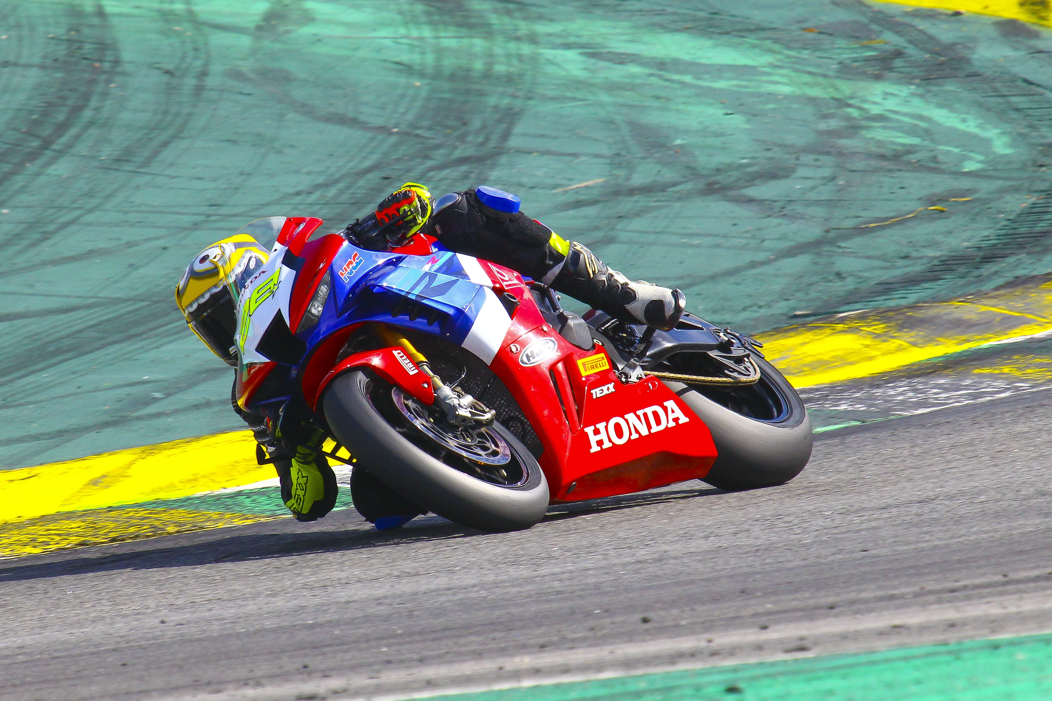 Embalado pela estreia da CBR 1000RR-R Fireblade SP com vitória na segunda etapa, Pedro Sampaio voltou à Interlagos bastante focado e com a moto bem acertada. Ele foi o mais rápido na SuperPole, largou na frente e liderou a corrida da SuperBike Pro. “Vinha na primeira colocação, mas um problema me fez perder o ritmo. É uma pena, mas eu estarei pronto para a próxima”, avisa o gaúcho Sampaio, atual campeão da categoria.