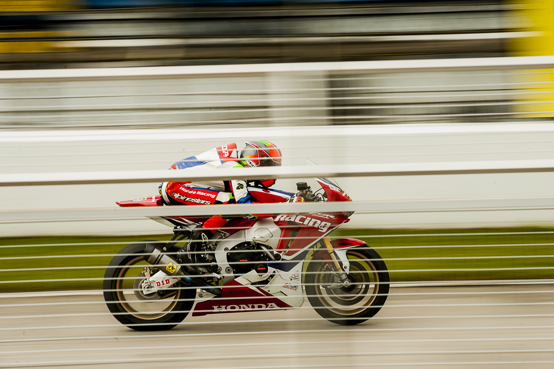 A equipe Honda Racing de motovelocidade é patrocinada por Pro Honda, Alpinestars, DID e Seguros Honda.