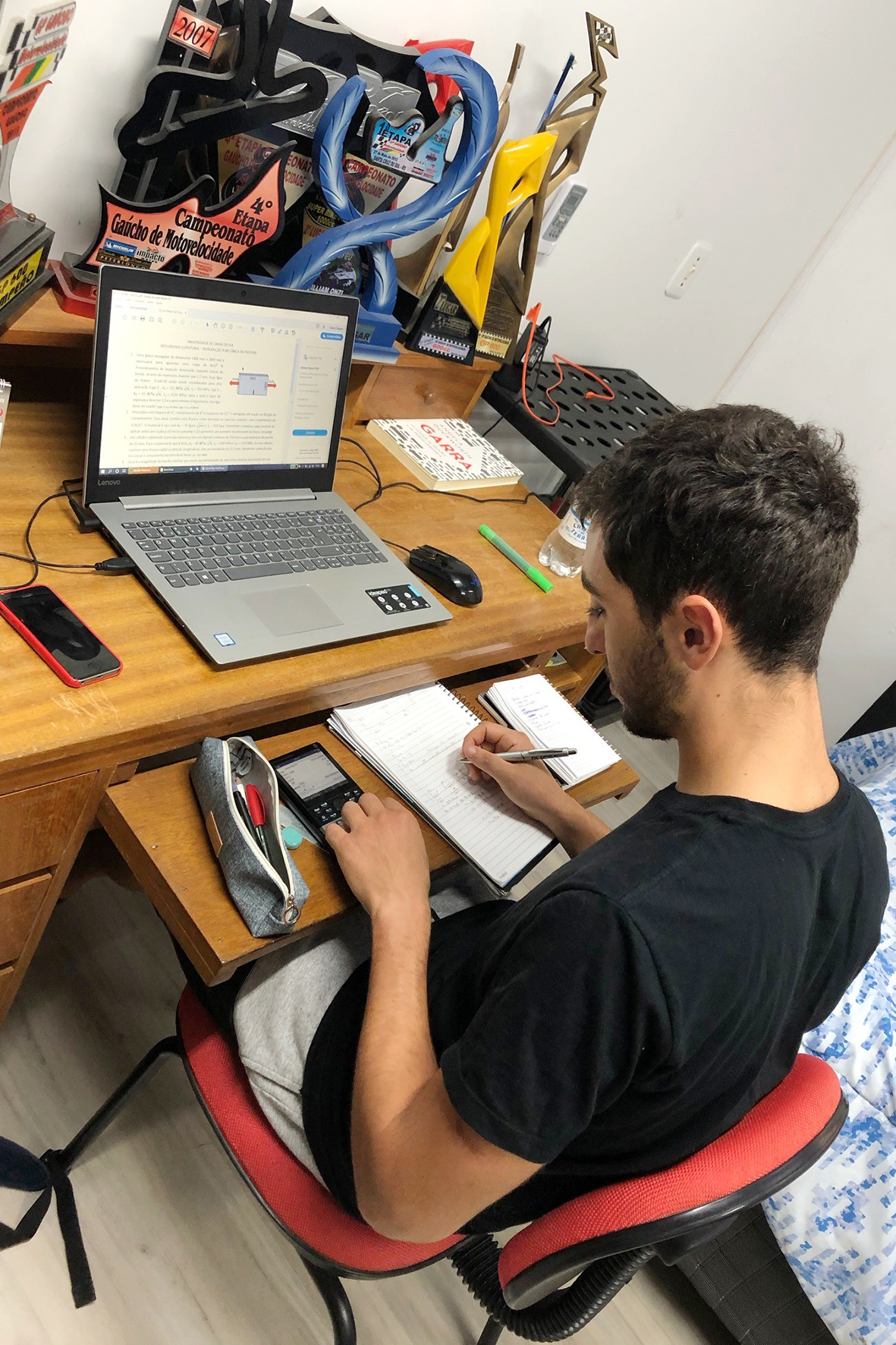 Em Bento Gonçalves (RS), Pedro Sampaio, piloto da equipe Honda Racing de motovelocidade e atual vice-campeão do SuperBike Brasil, dividiu a agenda entre treinos e estudos. “O jeito tem sido fazer bastante treino funcional em casa. Não sabemos ainda quanto tempo ficaremos assim, mas é importante manter o preparo físico e mental, já que é muito fácil perder o foco quando não tem corrida. Como faço também faculdade de engenharia mecânica, estou tendo aulas online e aproveitado esse tempo para me dedicar mais aos estudos”, revela.