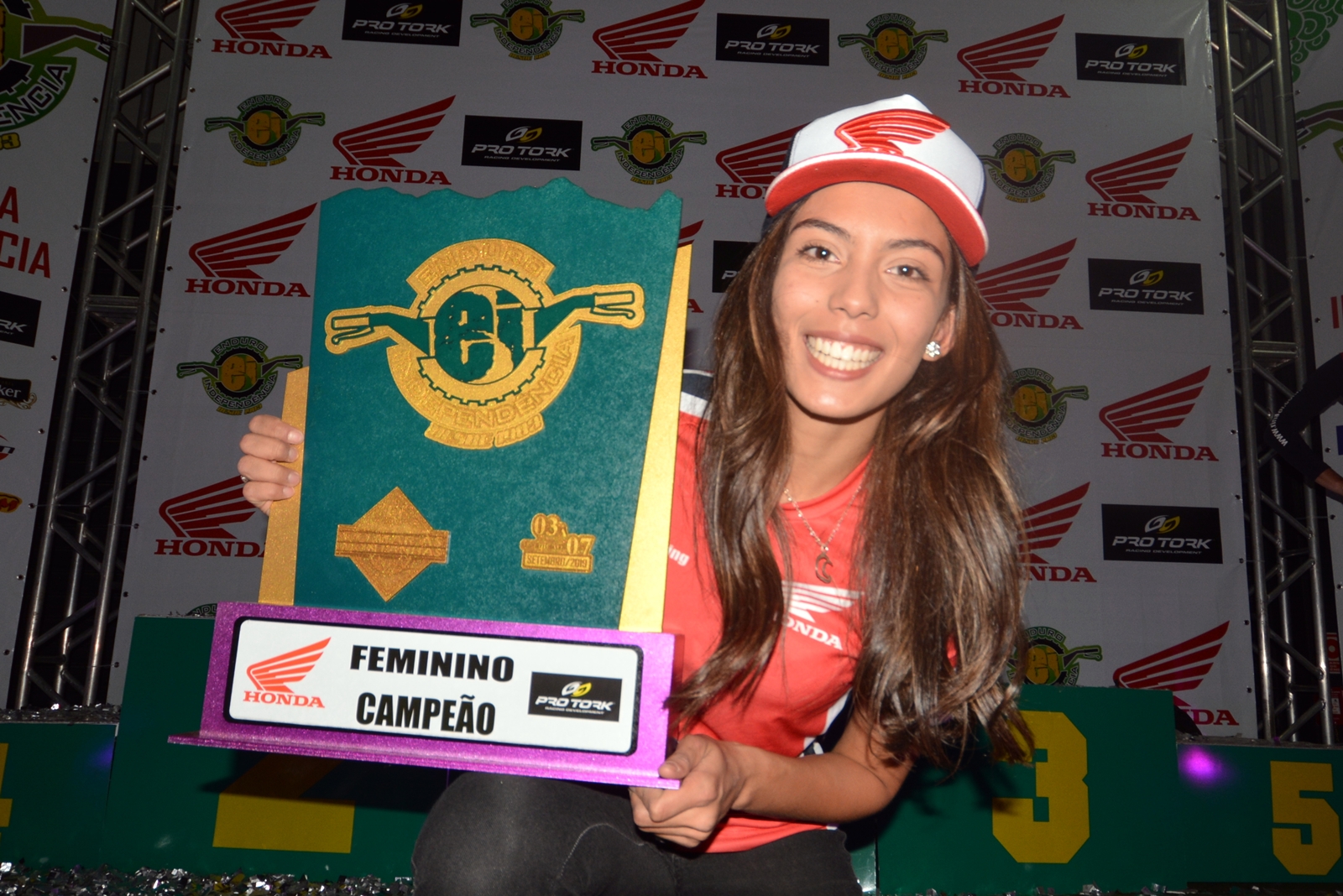 Embaixadora do Enduro da Independência 2019, a goiana veio para defender o título e fez bonito nos quatro dias de prova. Com a Honda CRF 250F, venceu todas as etapas e foi a única entre todas as categorias a somar pontuação máxima, de 200 pontos. “Consegui conquistar meu objetivo, que era o bicampeonato. Mesmo com algumas dificuldades nos primeiros dias, foi uma experiência incrível, fiz novas amizades e, claro, evoluí bastante no enduro de regularidade. Agradeço a toda equipe Honda pelo apoio em mais essa missão e já estou pronta para outra”, declara a goiana de 19 anos. Ela compete na próxima semana na final do Campeonato Brasileiro de Enduro FIM, também de olho no bicampeonato da classe para mulheres.