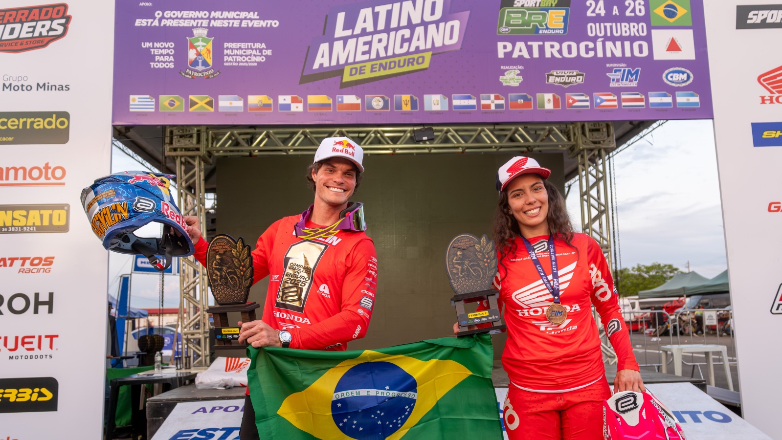 Bruno Crivilin (E2) e Bárbara Neves (EF), da Honda Racing, são campeões latino-americanos de enduro