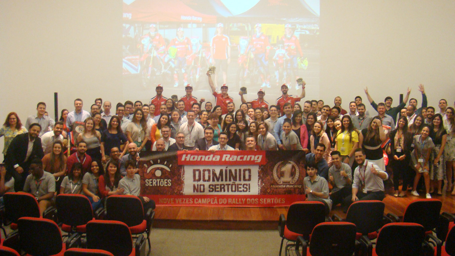 Após conhecer o prédio e a estrutura da Honda, a equipe participou de um bate-papo com os colaboradores. Eles puderam tirar dúvidas sobre como funciona a modalidade e perguntar curiosidades do dia a dia dos pilotos. A apresentação teve direito a exibição do vídeo inédito do time na 27ª edição do maior rali das Américas, finalizado no último dia 2. O Sertões 2019 partiu de Campo Grande (MS) rumo a Aquiraz (CE). Ao todo, foram percorridos quase cinco mil quilômetros, durante oito dias, em seis estados diferentes.
