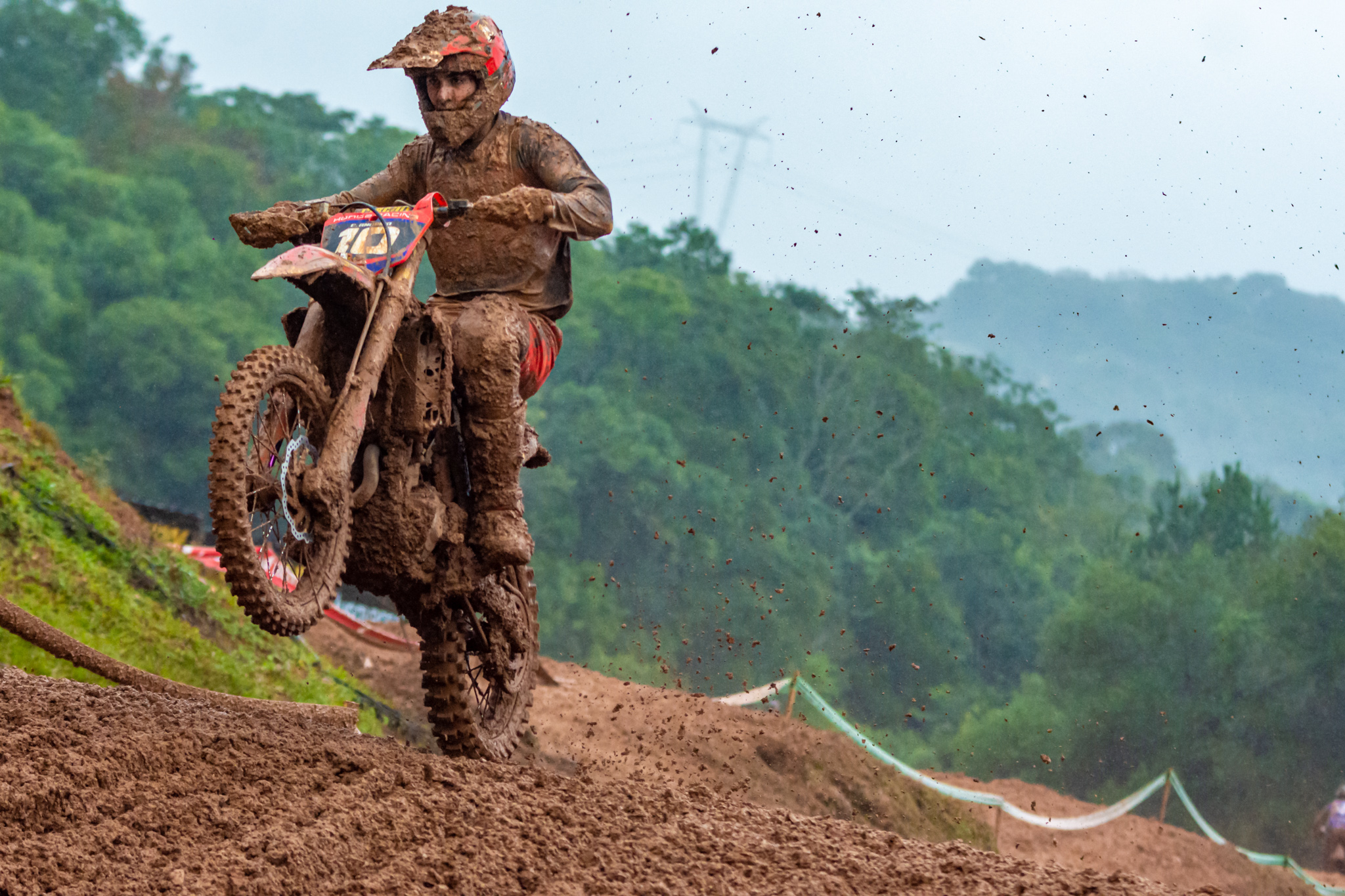 O paulista Fred Spagnol confirmou o quarto lugar na bateria da MX2. “A corrida foi uma loteria, tinha bastante barro na pista. Tive uma boa largada e decidi fazer uma prova com cautela, sem arriscar. Vinha pela segunda colocação, bem tranquilo, mas na subida havia um piloto caído. Precisei trocar o trilho e foi muito difícil conseguir subir, porque o chão estava muito liso. Perdi algumas colocações, fiz ultrapassagens e terminei em quarto”, resume.