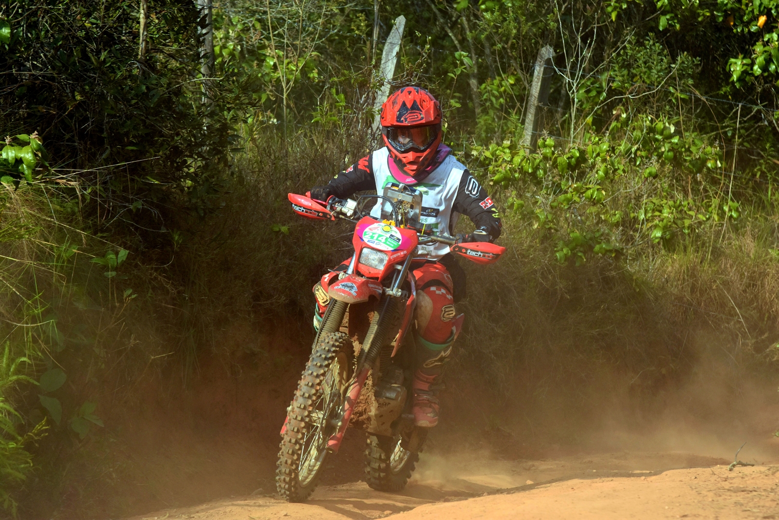 Esse mesmo modelo nacional da Honda é a máquina do hexacampeão Dário Júlio, outro que teve problemas no dia e finalizou na terceira colocação na categoria Brasil. “O enduro de regularidade vem mudando e evoluindo nos últimos anos. Hoje, a gente usa um sensor que transmite todas as informações por bluetooth para um celular ou tablet. Assim, recebemos as informações por áudio em um fone de ouvido. Infelizmente, meu celular e fone pararam de funcionar no meio da prova. Esses equipamentos ainda não suportam tantos impactos, poeira, água, etc”, explica o mineiro de Lavras.