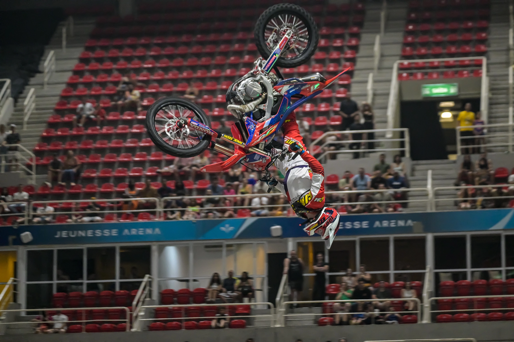 Rio de Janeiro (RJ) – O Rio Freestyle Motocross 2023 levantou o público com manobras alucinantes e disputas de alto nível técnico. Patrocinado por Honda e Pro Honda, o evento foi realizado na noite deste sábado (18/11) na Arena Jeunesse, no Rio de Janeiro (RJ). O vencedor foi o piloto japonês Taka Higashino.