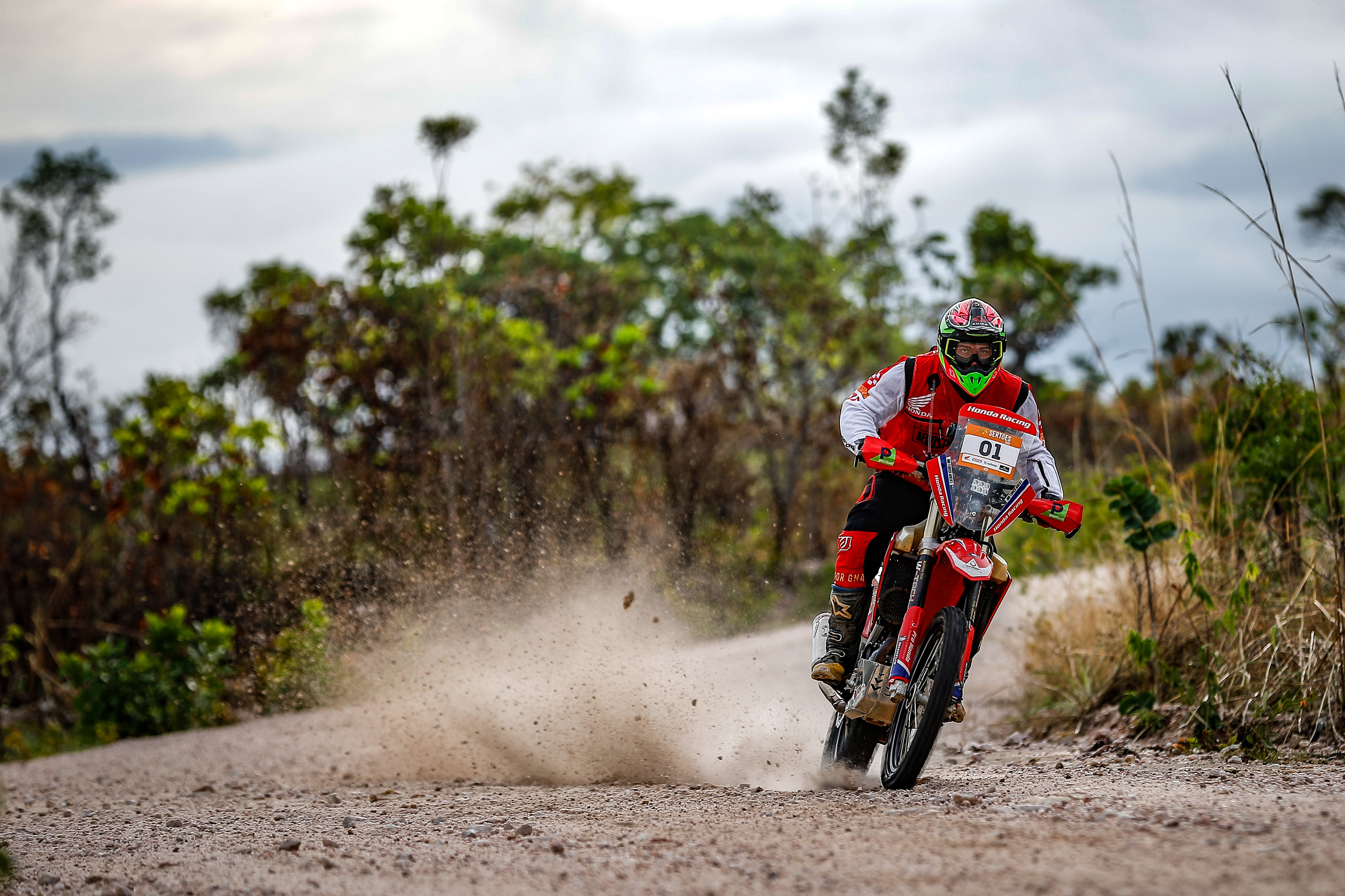 Representante da equipe Honda Racing na categoria Brasil, exclusiva para motos de fabricação nacional, Thiago Veloso venceu novamente o dia e lidera a classe com a CRF 250F. “A prova começou bem rápida, com estradinhas mais apertadas até chegar no abastecimento. Depois, passamos por subida de serra, trechos mais travados e, no fim, ficou bem rápido de novo”, descreve o estreante no Sertões, 11º colocado na geral do dia.