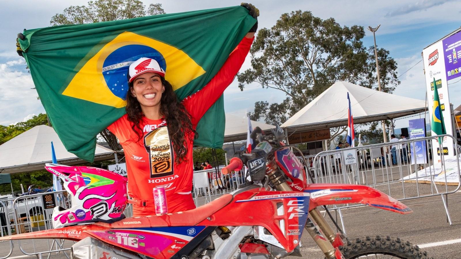 Bruno Crivilin (E2) e Bárbara Neves (EF), da Honda Racing, são campeões latino-americanos de enduro